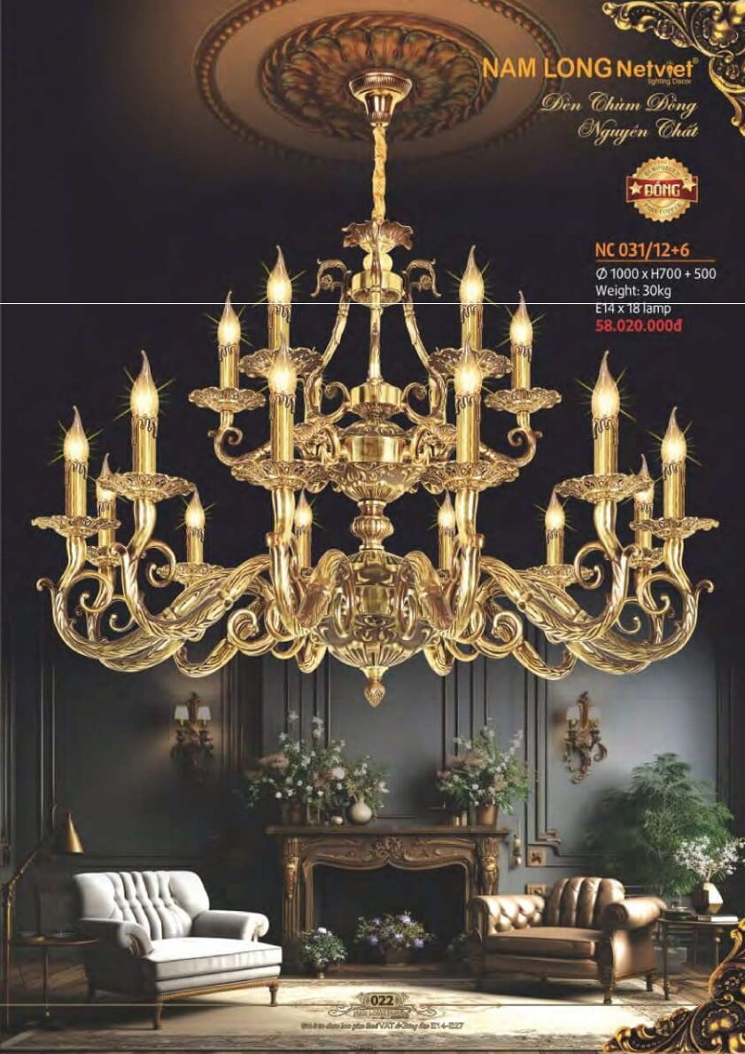 Đánh giá Đèn chùm đồng Nam Long Netviet NC 031/12+6