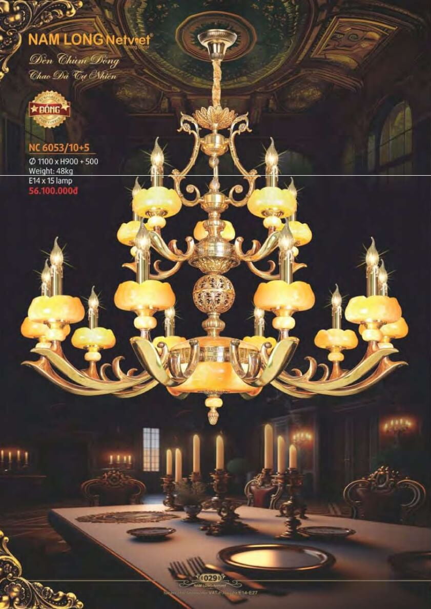 Đánh giá Đèn chùm đồng Nam Long Netviet NC 6053/10+5