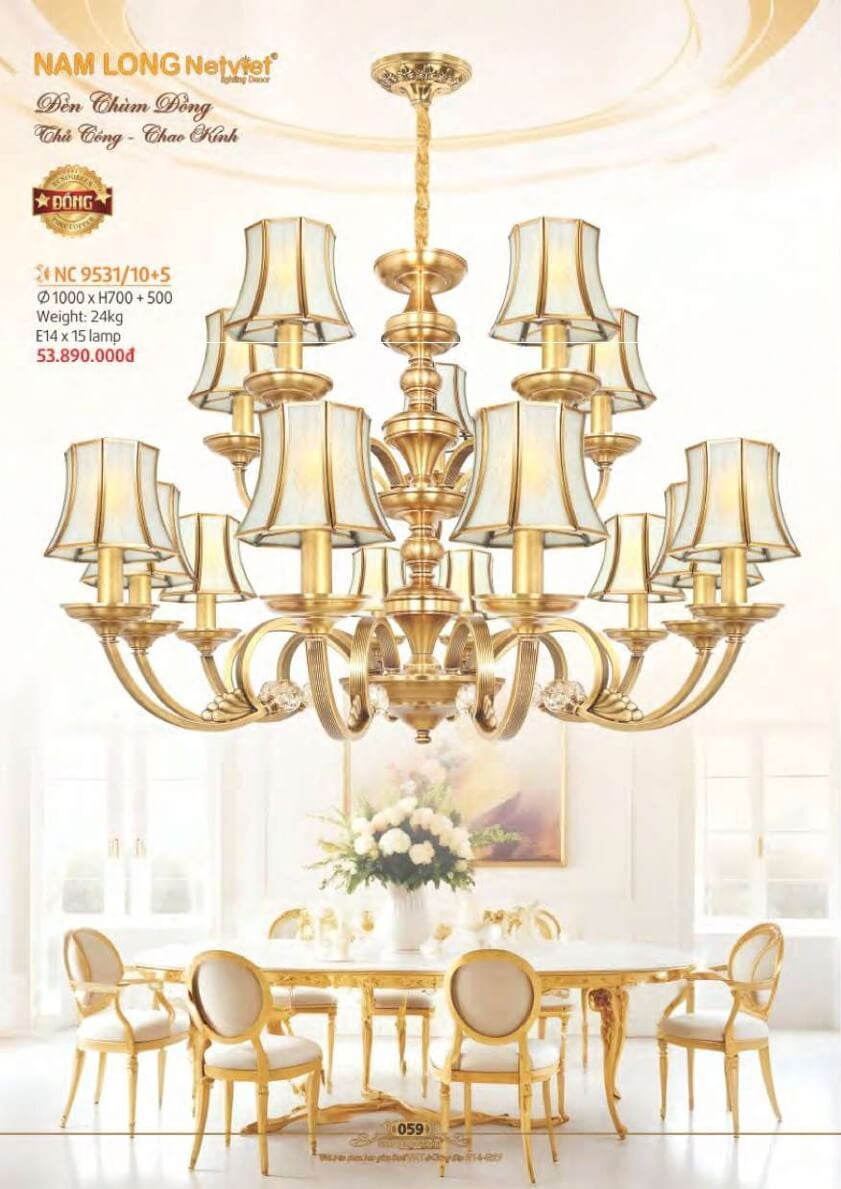 Đánh giá Đèn chùm đồng Nam Long Netviet NC 9531/10+5