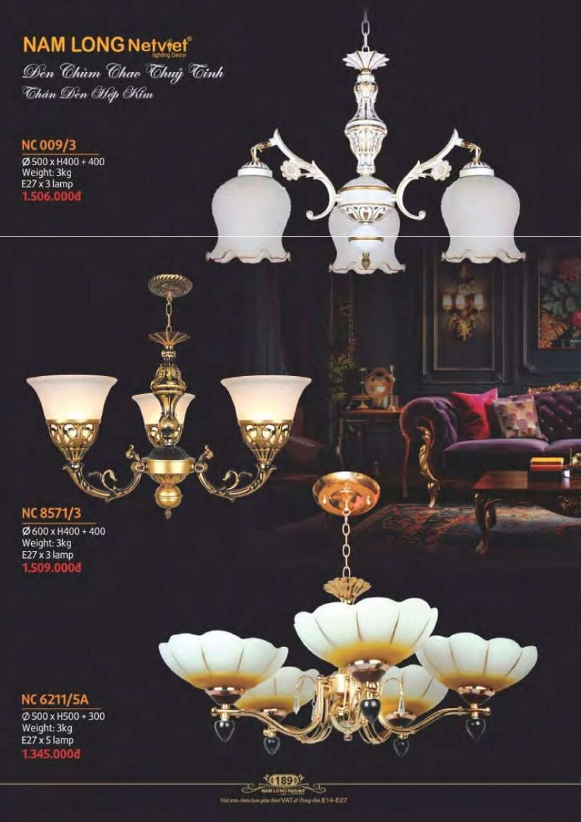 Đánh giá Đèn chùm Nam Long Netviet NC 009/3, NC 8571/3, NC 6211/5A