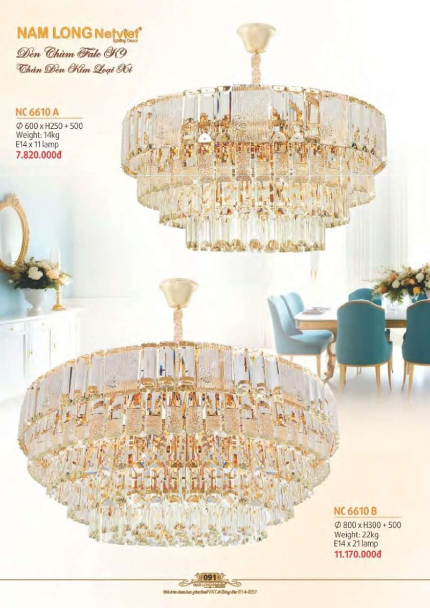 Đánh giá Đèn chùm Nam Long Netviet NC 6610A, NC 6610B