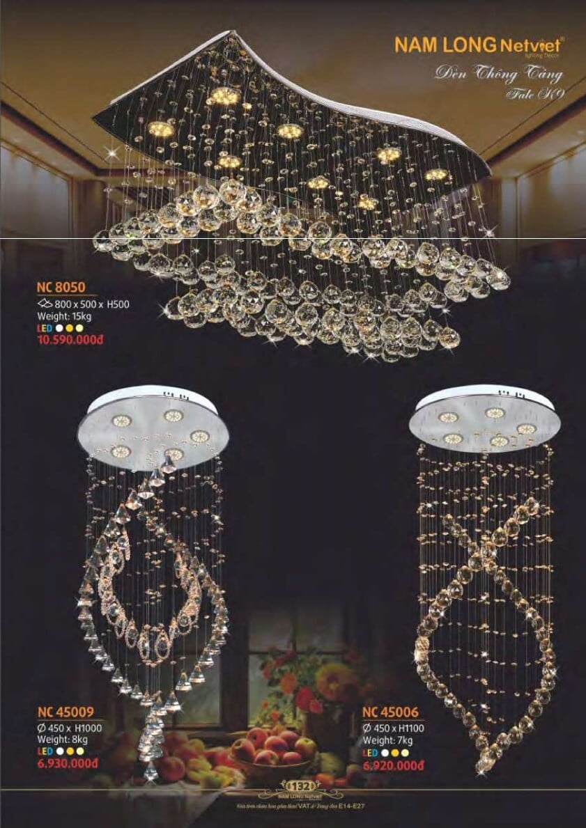 Đánh giá Đèn chùm Nam Long Netviet NC 8050, NC 45009, NC 45006
