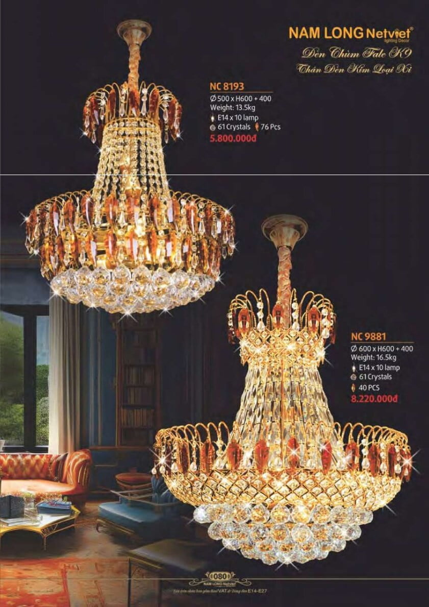 Đánh giá Đèn chùm Nam Long Netviet NC 8193, NC 9881