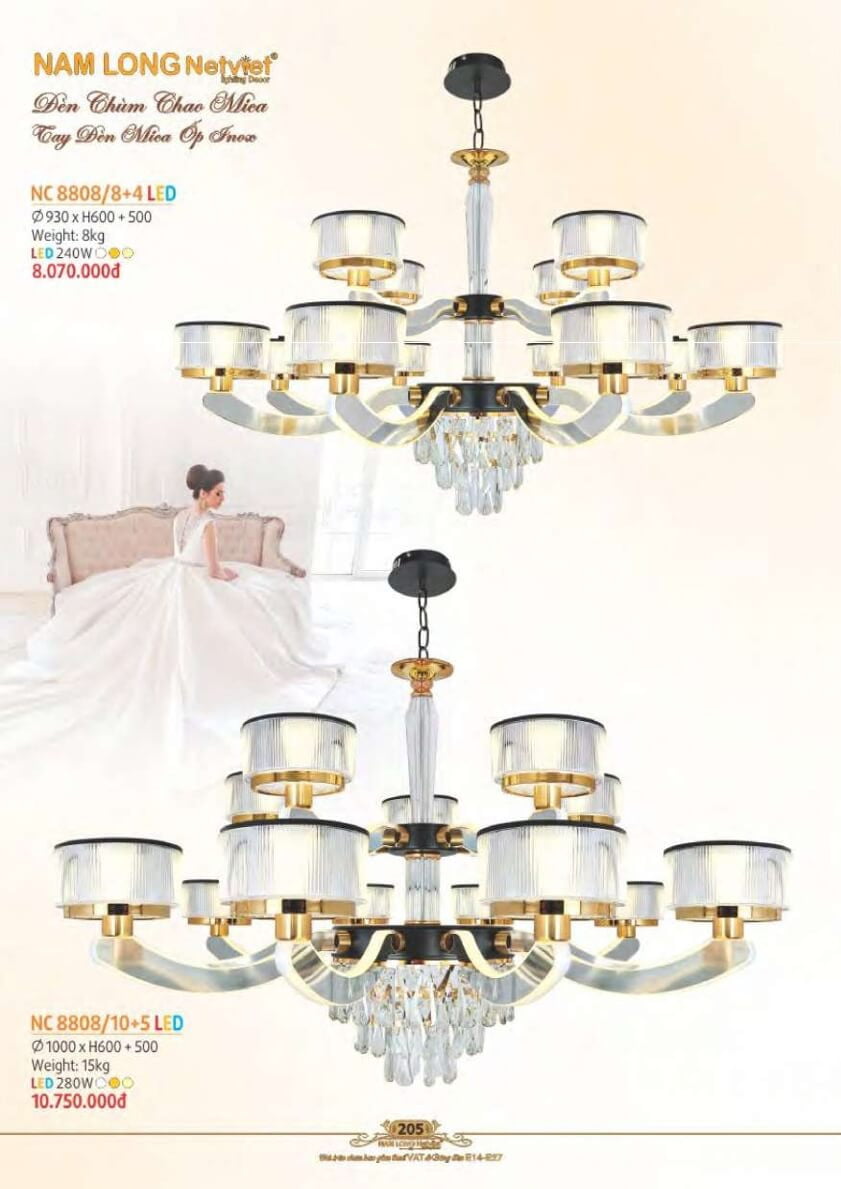 Đánh giá Đèn chùm Nam Long Netviet NC 8808/8+4, NC 8808/10+5