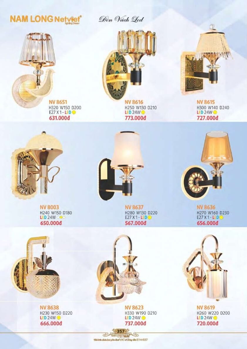 Đánh giá Đèn vách Nam Long Netviet NV 8651, NV 8616, NV 8615, NV 8003, NV 8637, NV 8636, NV 8638, NV 8623, NV 8619